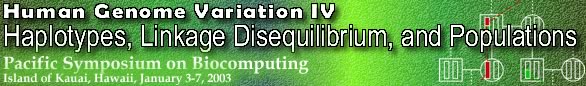 | The session of the Pacific Symposium on Biocomputing 2003 "Human Genomic Variation: Haplotypes, Linkage Disequlibrium, and Populations" will be devoted to the computational and statistical challenges of the studies of human genome variation. This year's session is preceded by three succesful sessions on the topic carried out in PSB editions 2000-2002. Please visit the PSB Electronic Proceedings to explore the contributions accepted in previous years. As in the previous instances of the Human Genomic Variation session, its goal is to foster the discussion of new research, methods, algorithms, and tools, that promise to facilitate the elucidation of the connections between genotypes and phenotypes using the data generated by high-throughput genotyping technologies. We encourage academic, industrial and government scientists to submit manuscripts to the session. In addition to a session for oral presentation of novel peer-reviewed contributions, a panel discussion devised to encourage exchange between industry and academic scientists will be held. Participants are invited to discuss their issues with other peers in this panel session. Posters and computer demonstrations are also requested to complement the the panel and the peer-reviewed papers. |